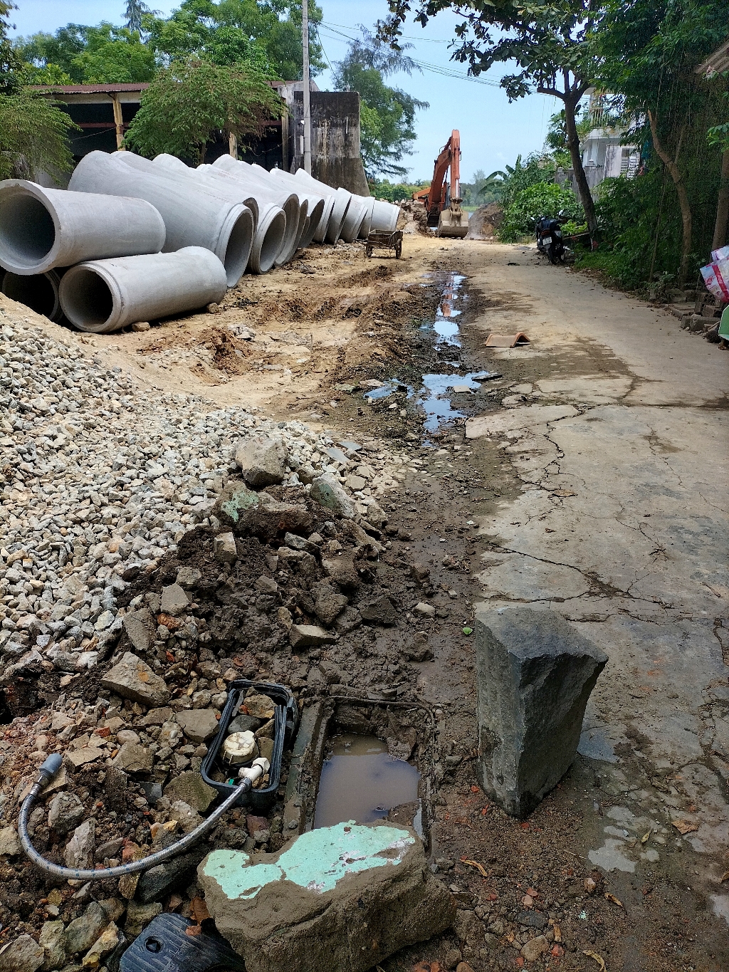 Chúng tôi ở tại kiệt 350 Bùi Thị Xuân kiến nghị di dời 3 đồng hồ nước này và các đường ống kèm theo sang một bên để tránh tình trạng lại bị vỡ và để công trình thi công được thuận tiện.