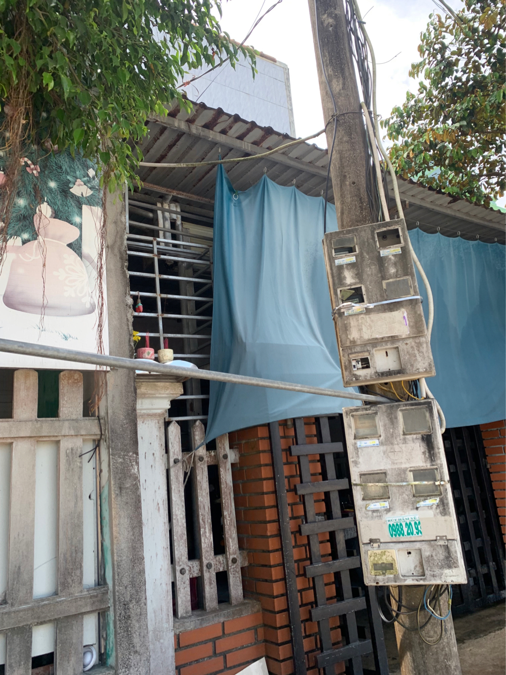 Dời hộp điện lên cao ở bãi đỗ xe chợ Vĩnh Tu, xã Quảng Ngạn, huyện Quảng Điền, thành phố Huế, vì xóm có nhiều trẻ nhỏ nên rất nguy hiểm mỗi khi trời mưa hay nắng to mối lo ngại của người dân quanh chợ mong sớm di chuyển trụ điện để mọi người cảm thấy an toàn (thời gian chụp ảnh 11h00, ngày 10/6/2025)