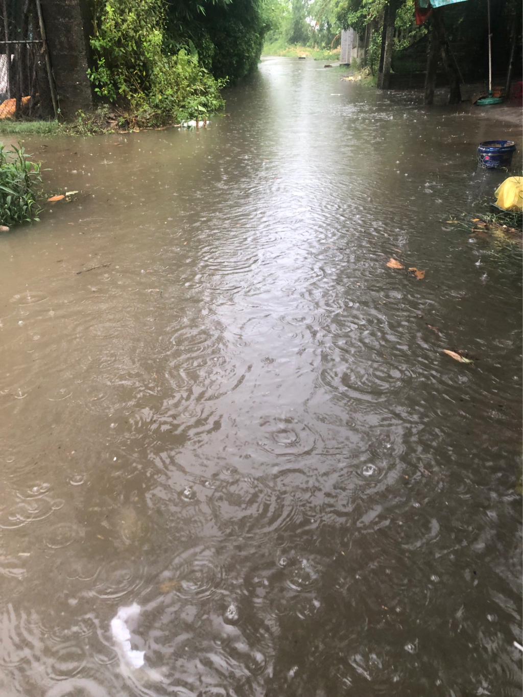 Kiệt 130 đường Nguyễn Lộ Trạch, phường Xuân Phú, quận Thuận Hoá, thành phố Huế mới mưa đã ngập, đường hiện tại không có cống thoát nước và đường đang dự án mở 36m. mùa mưa bão gần đến, đường khi nào làm, mới mưa đã ngập con em chúng tôi không thể chở đi học được.