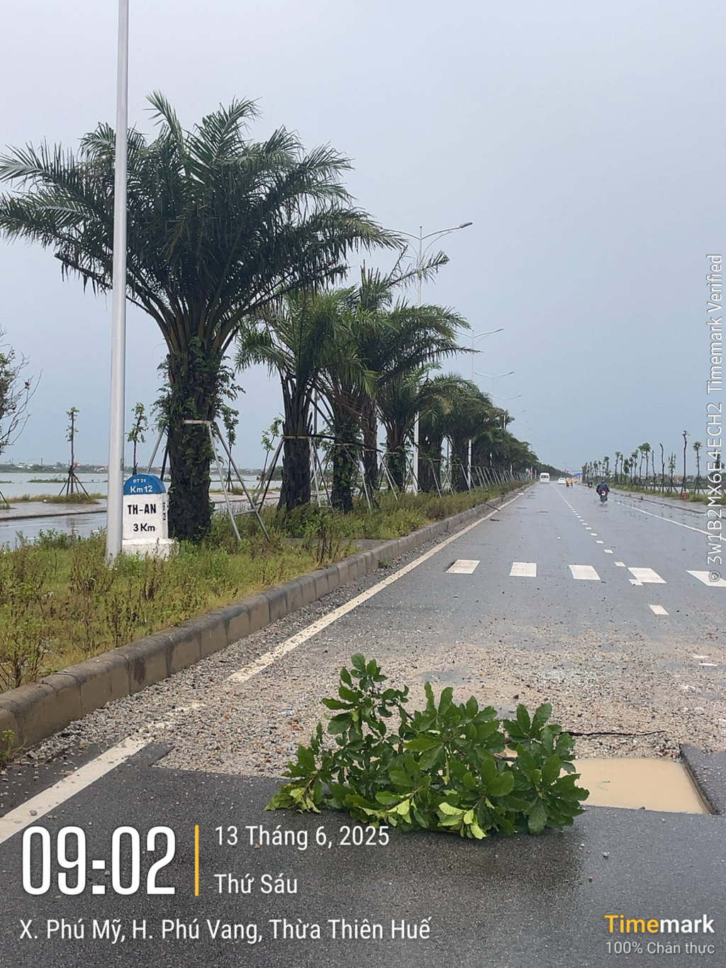Tại lý trình Km12 đường Võ Văn Kiệt nối dài, hiện phần đường bê tông nhựa đã bị hư hỏng đã được cắt để sửa chữa kích thước khoảng 1mx2m và đã được bồi lấp bằng đá dăm. Tuy nhiên, do ảnh hưởng bão số 1 mưa lớn kéo dài đã kéo rê đất đá ra khỏi hố, gây nguy hiểm cho phương tiện qua lại.