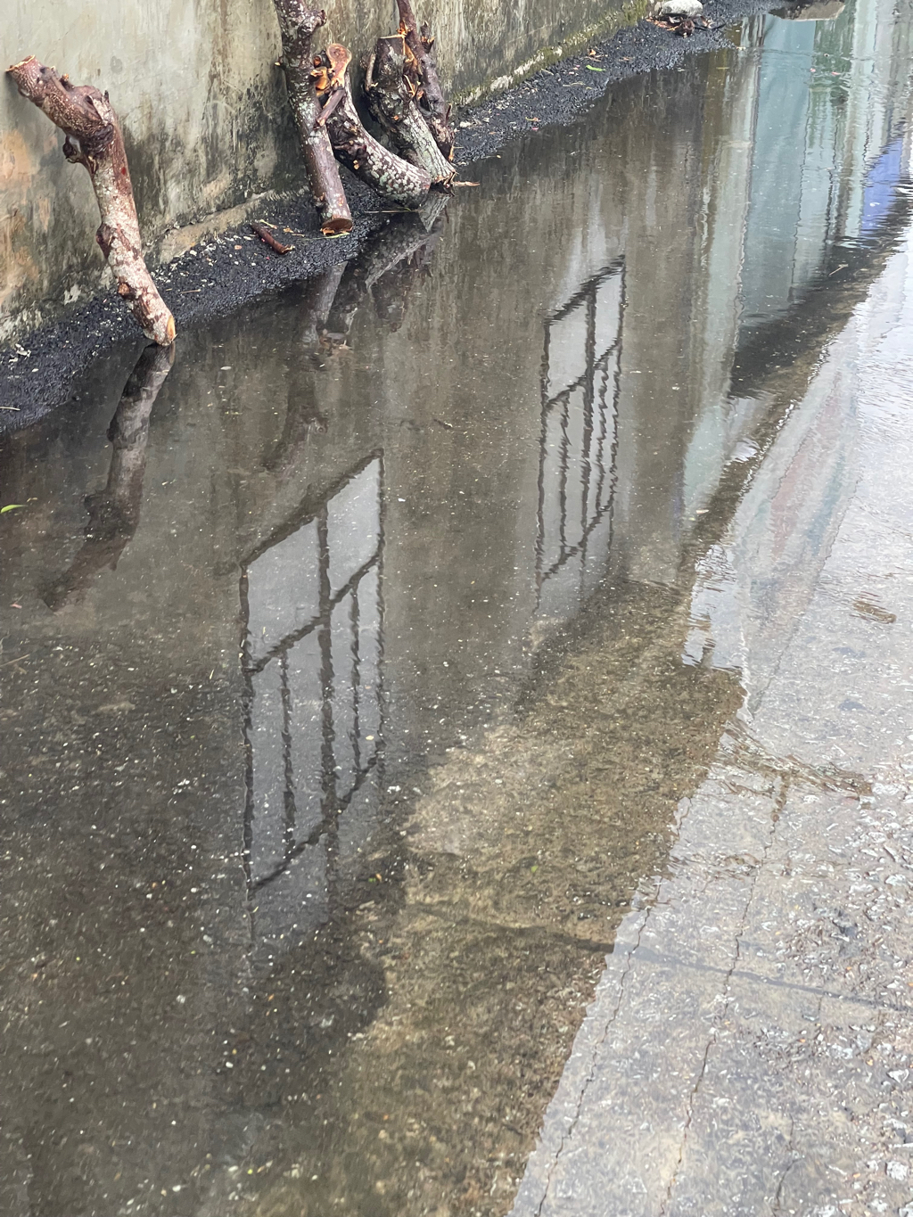 Trên tuyến đường này có mặt đường dốc và nước mưa toàn bộ trên tuyến này đều dồn chảy về ngã 3.