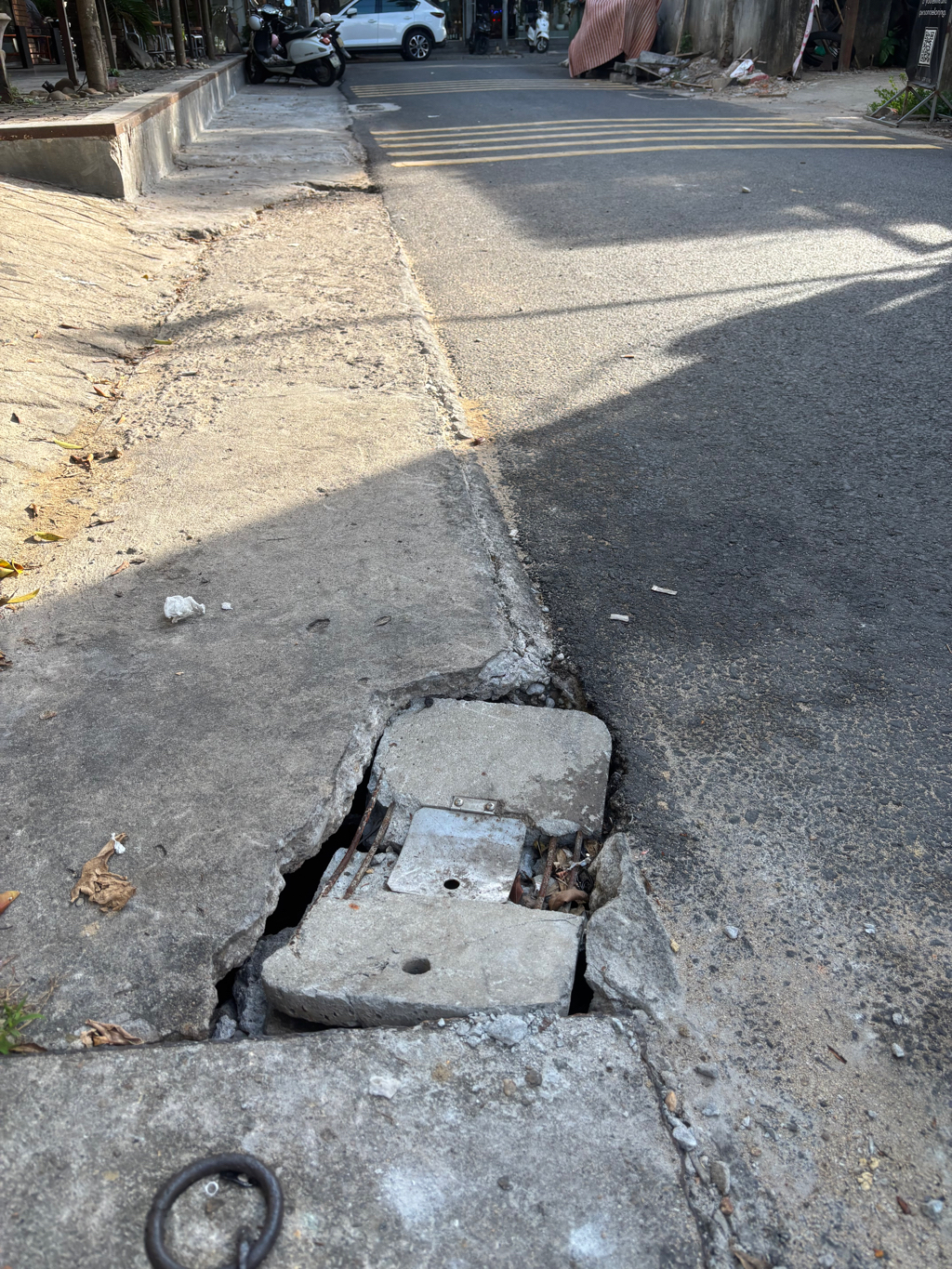 Lề đường đối diện số nhà 01 Trần Bình Trọng không biết vì sao bị bể 1 khoảng to rất nguy hiểm, ban đêm không để ý sẽ dễ sẩy chân trúng hố sâu. Phải lấy tạm miếng đá để che chắn mà cũng gãy rồi. Hy vọng sớm được khắc phục để không gây nguy hiểm.