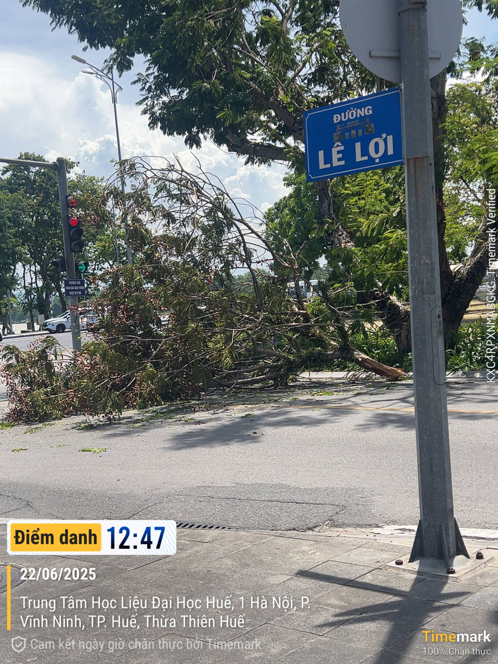 Cây này nằm ngay cột đèn giao thông (Đường Lê Lợi hướng rẽ phải lên Cầu Phú Xuân) thường xuyên gãy, trưa nay 12:47 ngày 22/6/2025 cũng vừa gãy xong đổ lên người đi đường đang chờ đèn giao thông. Nhờ cơ quan chức năng tỉa bớt cây tránh ảnh hưởng giao thông và gây nguy hiểm cho người đi đường.