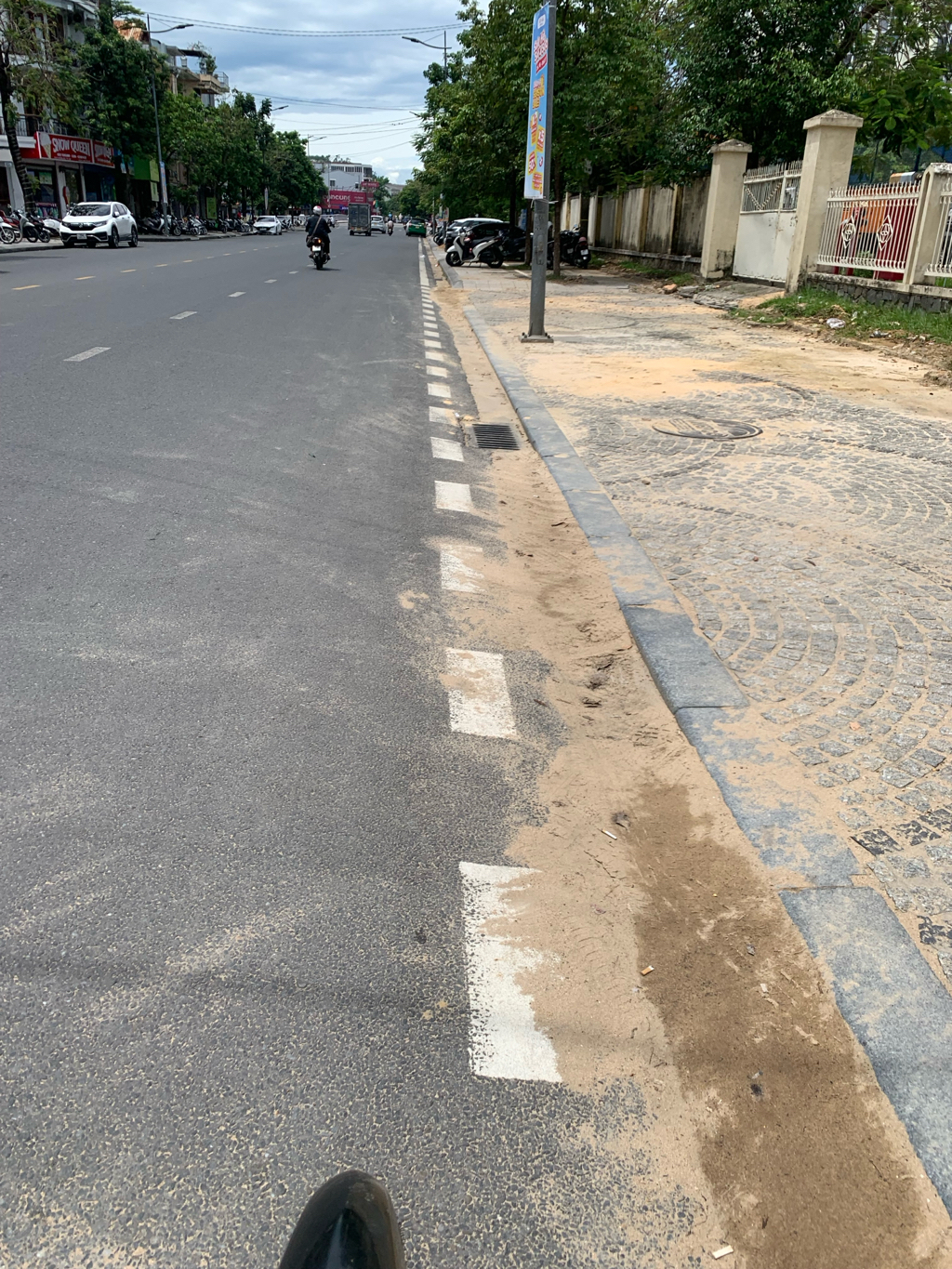 Đơn vị thi công đường điện ngầm đường Lý Thường Kiệt (trước mặt Công ty Điện lực Huế) nhưng để đất cát chảy vào hệ thống thoát nước 1 đến 2 tuần nay vẫn không dọn dẹp, có thể làm ảnh hưởng đến thoát nước.