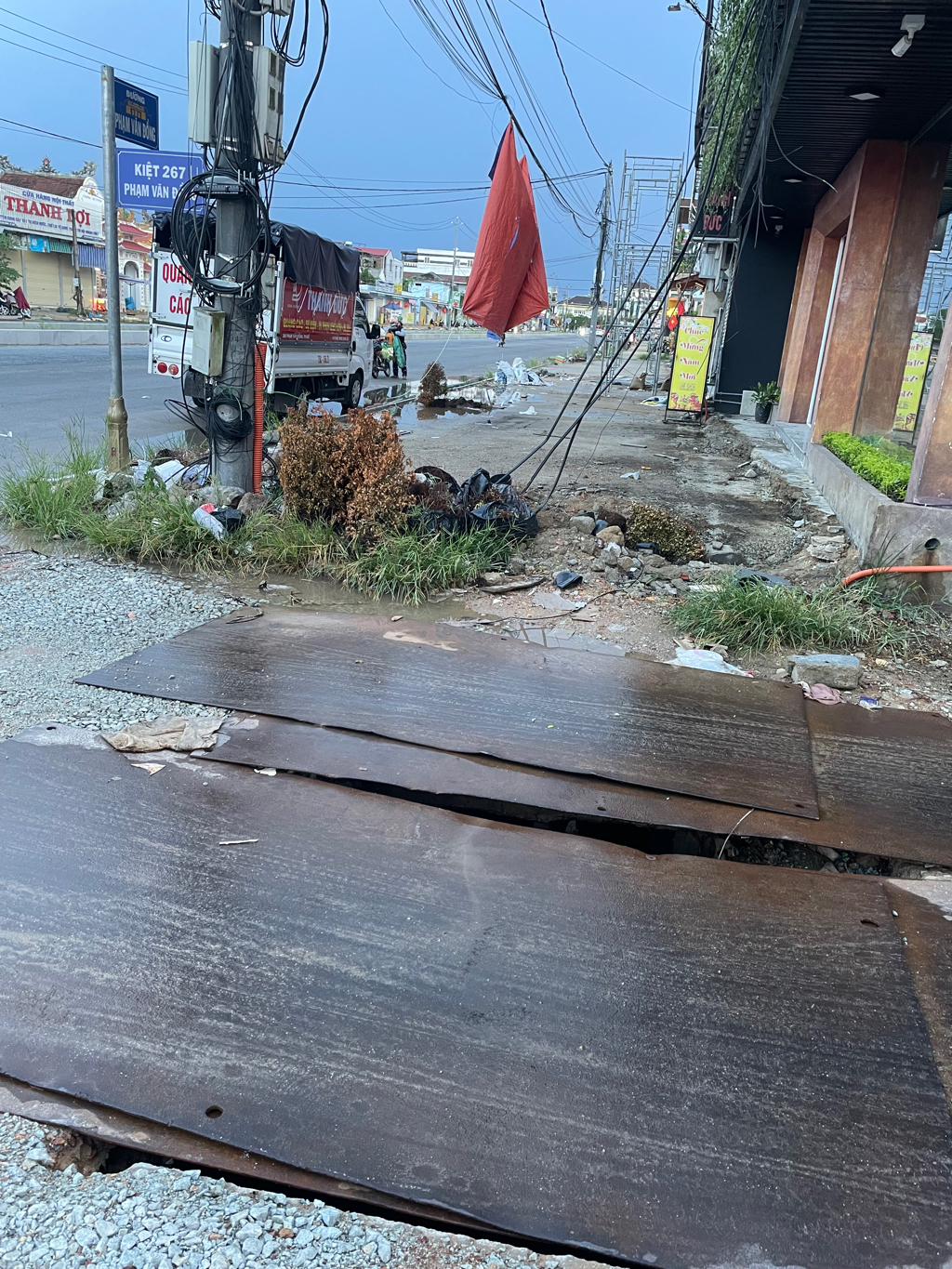 Tại vị trí Quý Ông/Bà phản ánh thuộc gói thầu Thoát nước, lề đường Phạm Văn Đồng, dự án Cải thiện môi trường nước thành phố Huế. Hiện Nhà thầu đang tập kết vật tư để triển khai thi công hố thu hào kỹ thuật, sau khi hoàn thành hạng mục này, Nhà thầu sẽ thực hiện công tác hoàn trả theo đúng hồ sơ thiết kế. Trong thời gian thi công, Ban QLDA đã chỉ đạo Tư vấn, Nhà thầu tiến hành xử lý tạm để người dân lưu thông tại vị trí này đảm bảo an toàn (đính kèm hình ảnh).