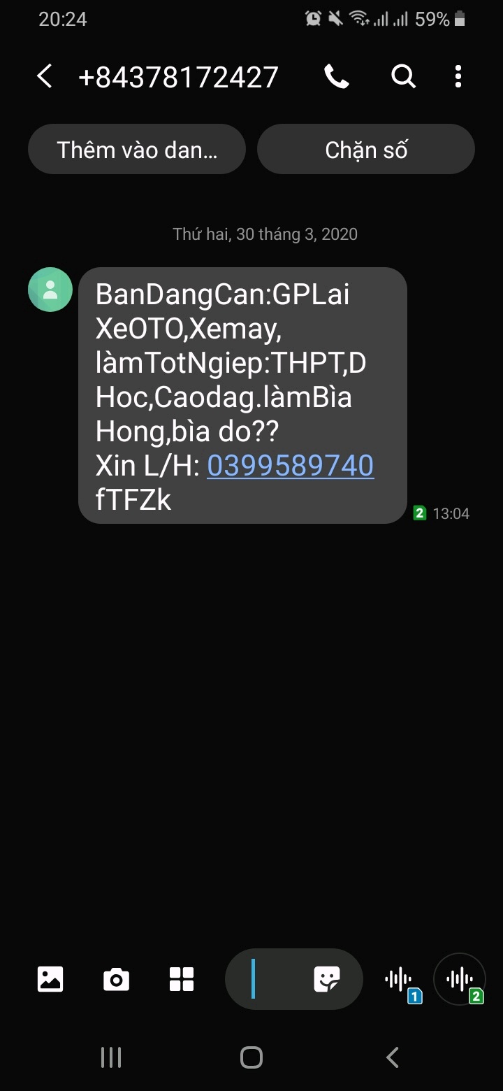 Tin nhắn rác. Kính gửi cơ quan chức năng xử lý