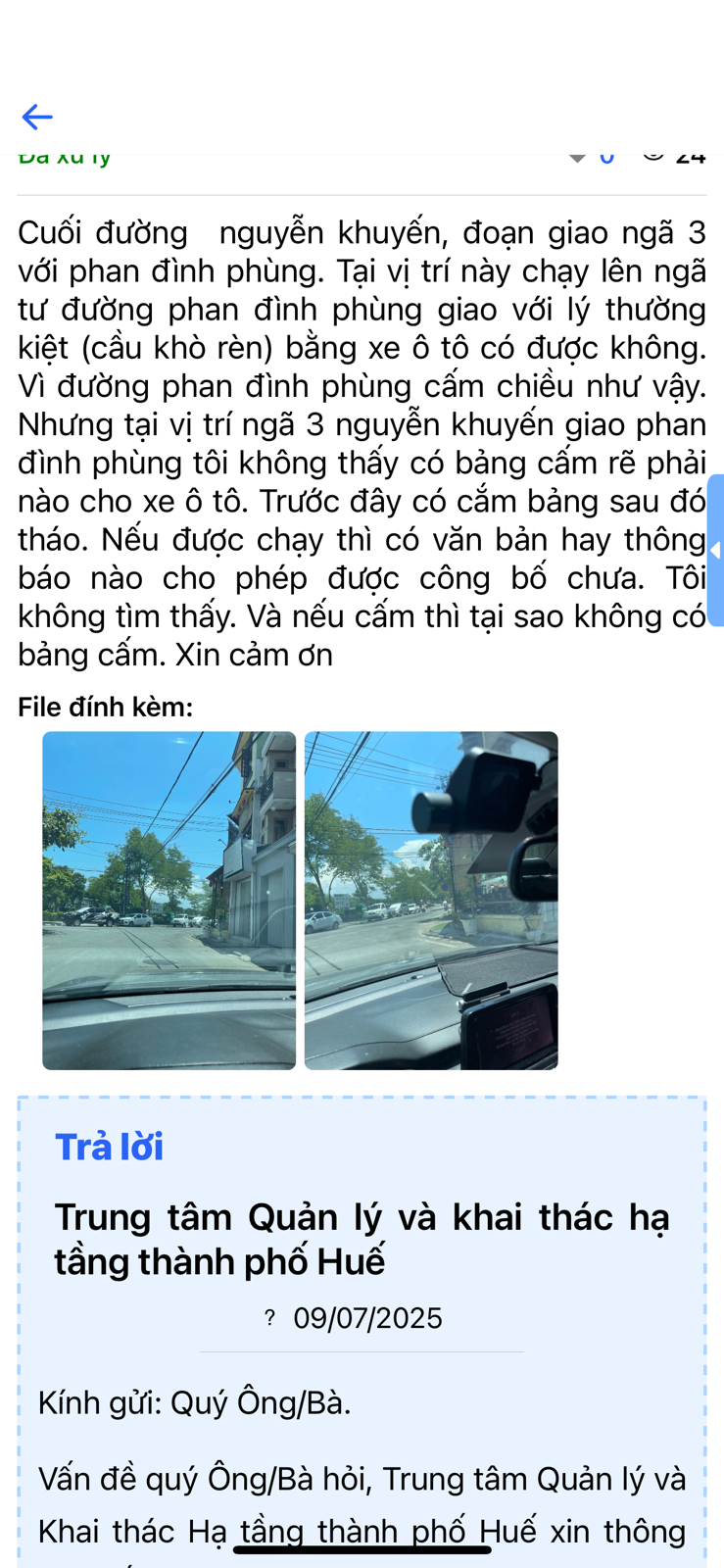 Vấn đề quý Ông/Bà phản ánh, Trung tâm Quản lý và Khai thác Hạ tầng thành phố Huế xin thông báo kết quả như sau: