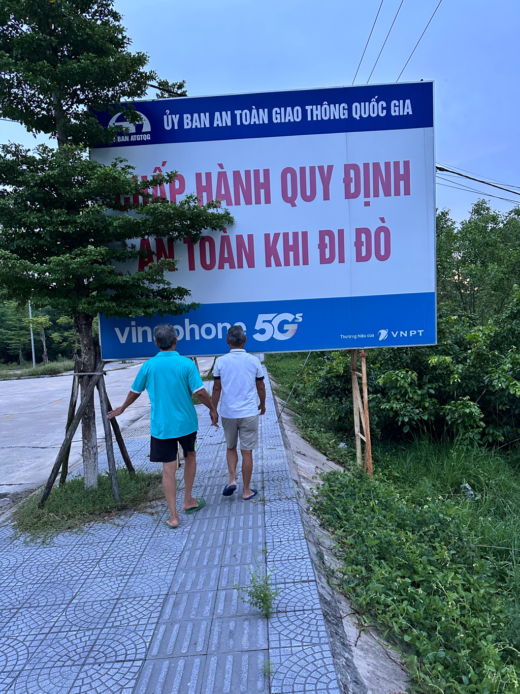 Bảng cảnh báo an toàn khi đi đò được lắp trên vỉa hè tại công viên Cồn Tộc, xã Đan Điền quá thấp làm cản trở người đi bộ. Chỉ người nào cao dưới 1,3m mới đi qua được.