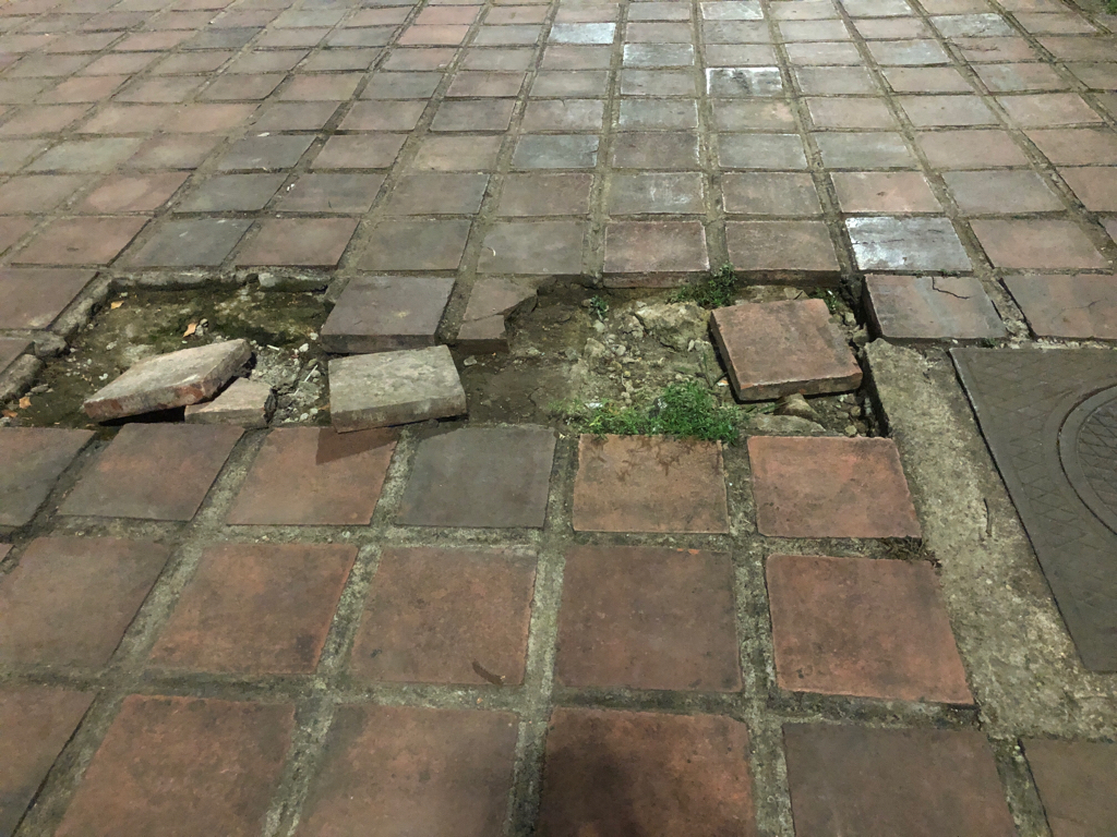 Sân trước cổng thành, phía sau cột cờ Phu Vân Lâu bị bong, tróc gây mất mỹ quan và mất an toàn cho trẻ nhỏ.