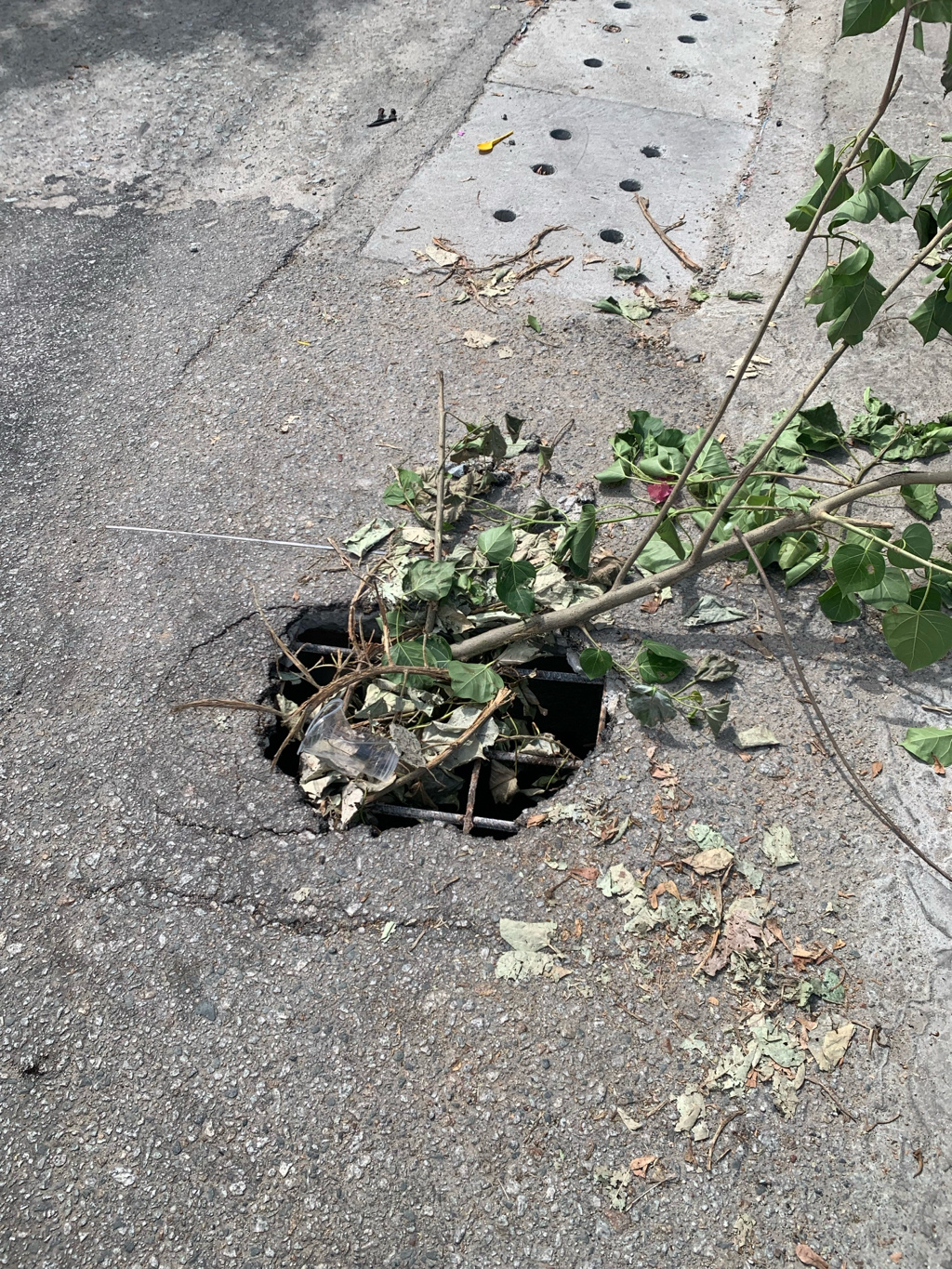 Vị trí nắp cống thoát nước bị bể rất nguy hiểm cho các phương tiện, đặc biệt vào buổi tối, giao nhau giữa đường Dạ Lê và Nguyễn Văn Chư, phường Thanh Thủy, Trường Tiểu học Dạ Lê.