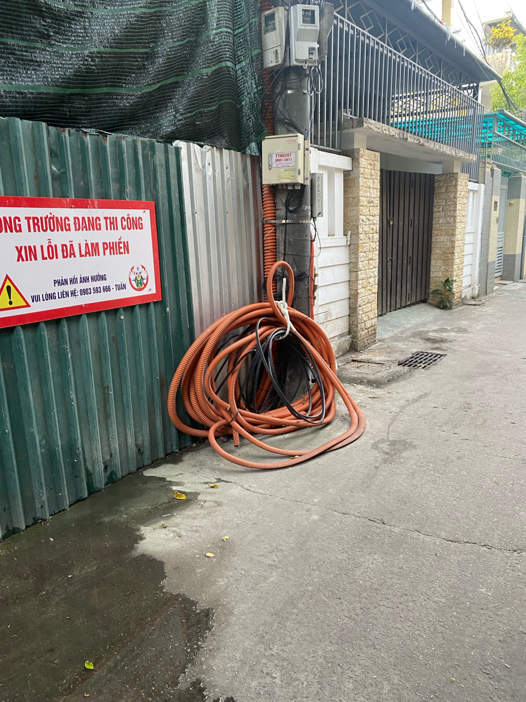 Dây điện nguy hiểm. Cuộn dây để ở đây đã lâu (khoảng 2 tháng) lấn ra đường hẻm số nhà 35 Nguyễn Thái Học gây cản trở đi lại của bà con trong kiệt này, hơn nữa chúng tôi không biết có điện hay không. Mong Hue- S có ý kiến để giải quyết.