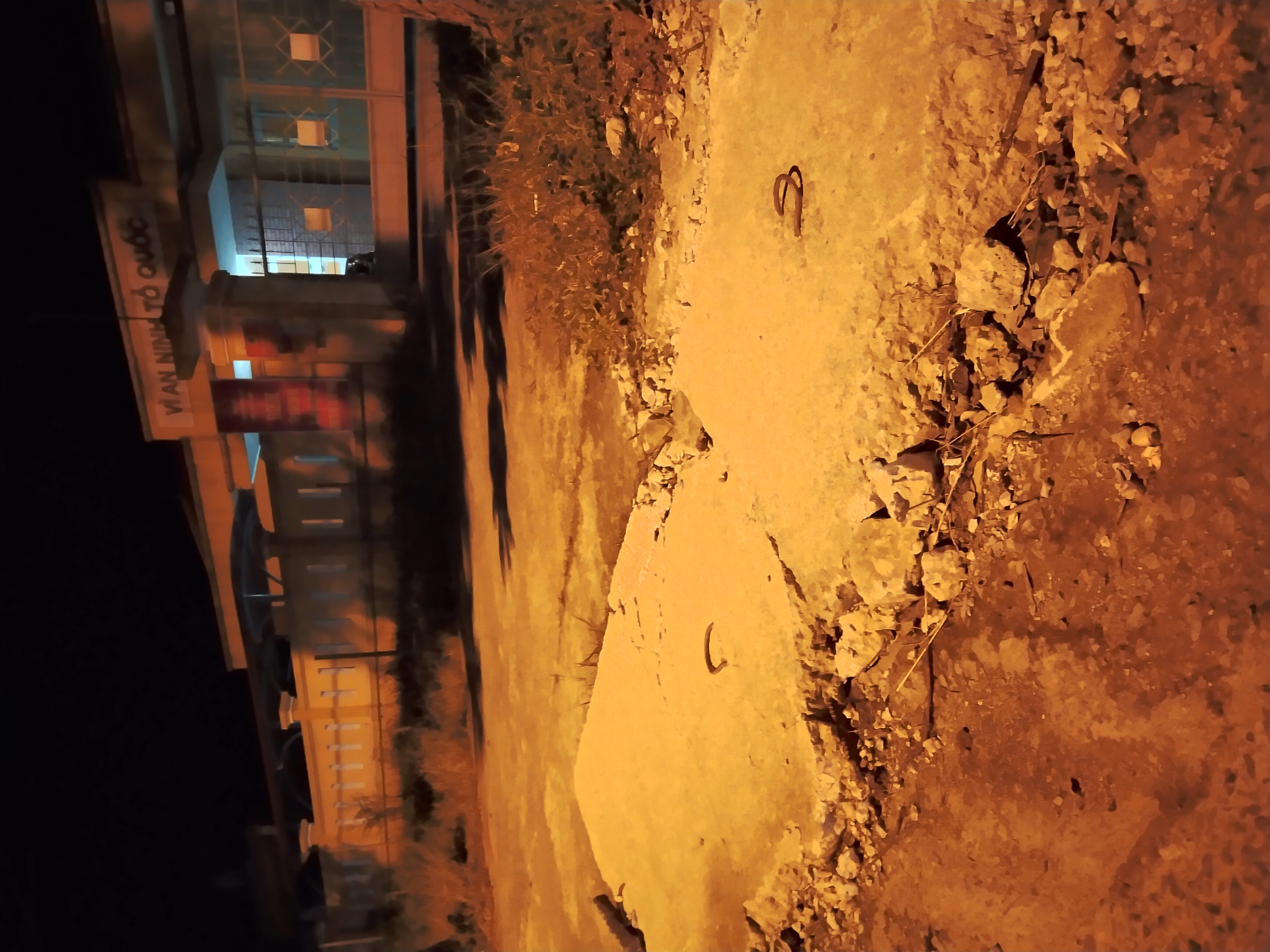 Rất nhiều tấm đoanh bể lòi cả sắt hai bên đường Hồ Chí Minh đoạn trước mặt trụ sở công an xã A Ngo thuộc thôn Ta Roi kéo dài một đoạn về phía thị trấn, nay thuộc xã A Lưới 2. Ảnh chụp tại hiện trường lúc 19h13 ngày 23/7/2025.