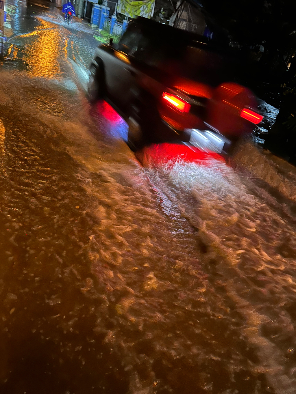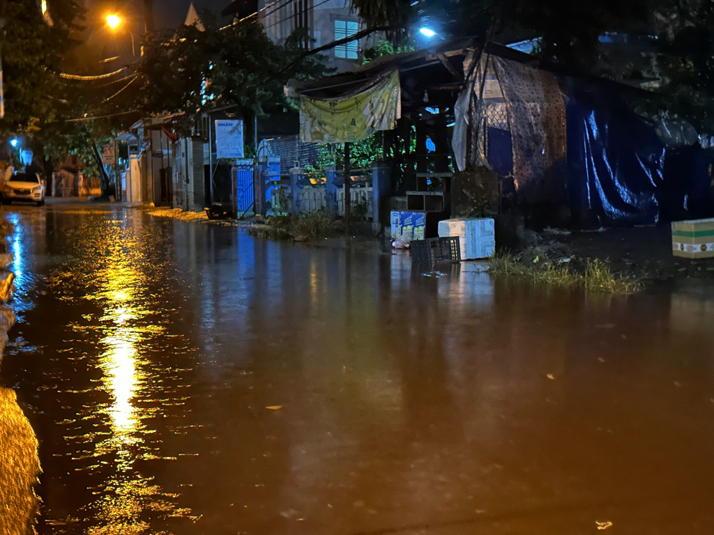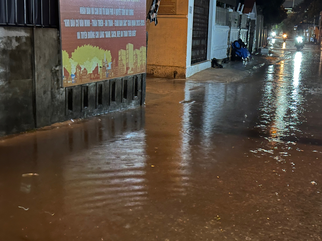 Hình ảnh đính kèm cho thấy cả đoạn đường ngập nặng sau cơn mưa phùn,