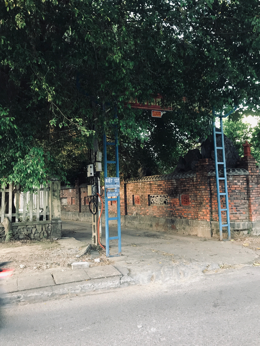 Cây Si một bên cổng chào 137 Phan Đình Phùng, Huế nghiêng tán cây phủ hết cổng chào rất nguy hiểm cho người qua lại.