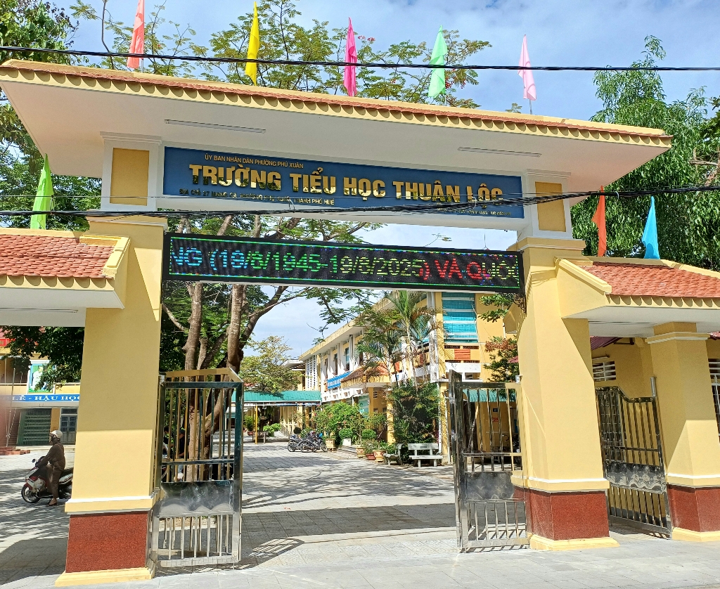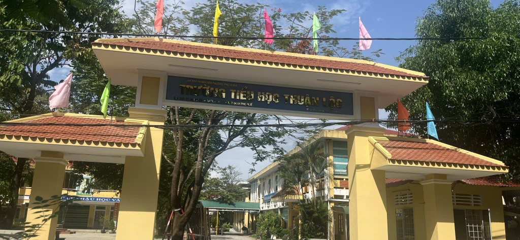 Hiện tại trước cổng Trường Tiểu học Thuận Lộc, 27 Mang Cá, phường Phú Xuân có 1 chùm dây mạng không biết của đơn vị nào sà xuống che bảng tên trường làm mất vẻ mỹ quan của trường. Đề nghị các cơ quan chức năng quan tâm giải quyết. Hình ảnh chụp lúc 15h ngày 01/8/2025.