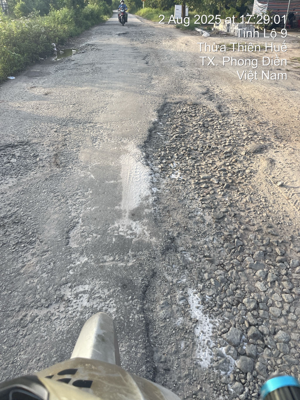 Kính mong cơ quan chức năng trùng tu đoạn đường TL9 giáp Công ty Kanglongda KCN Phong Điền tầm 15-20m ổ voi ổ gà, là đoạn đường giao nhau khu công nghiệp thường xuyên có xe lớn vận chuyển ra vào, huyết mạch, công nhân viên phường Phong Dinh (xã Hoà Bình Chương cũ) thường xuyên qua lại mật độ đông. Chân thành cảm ơn Hue-S và cơ quan chức năng.