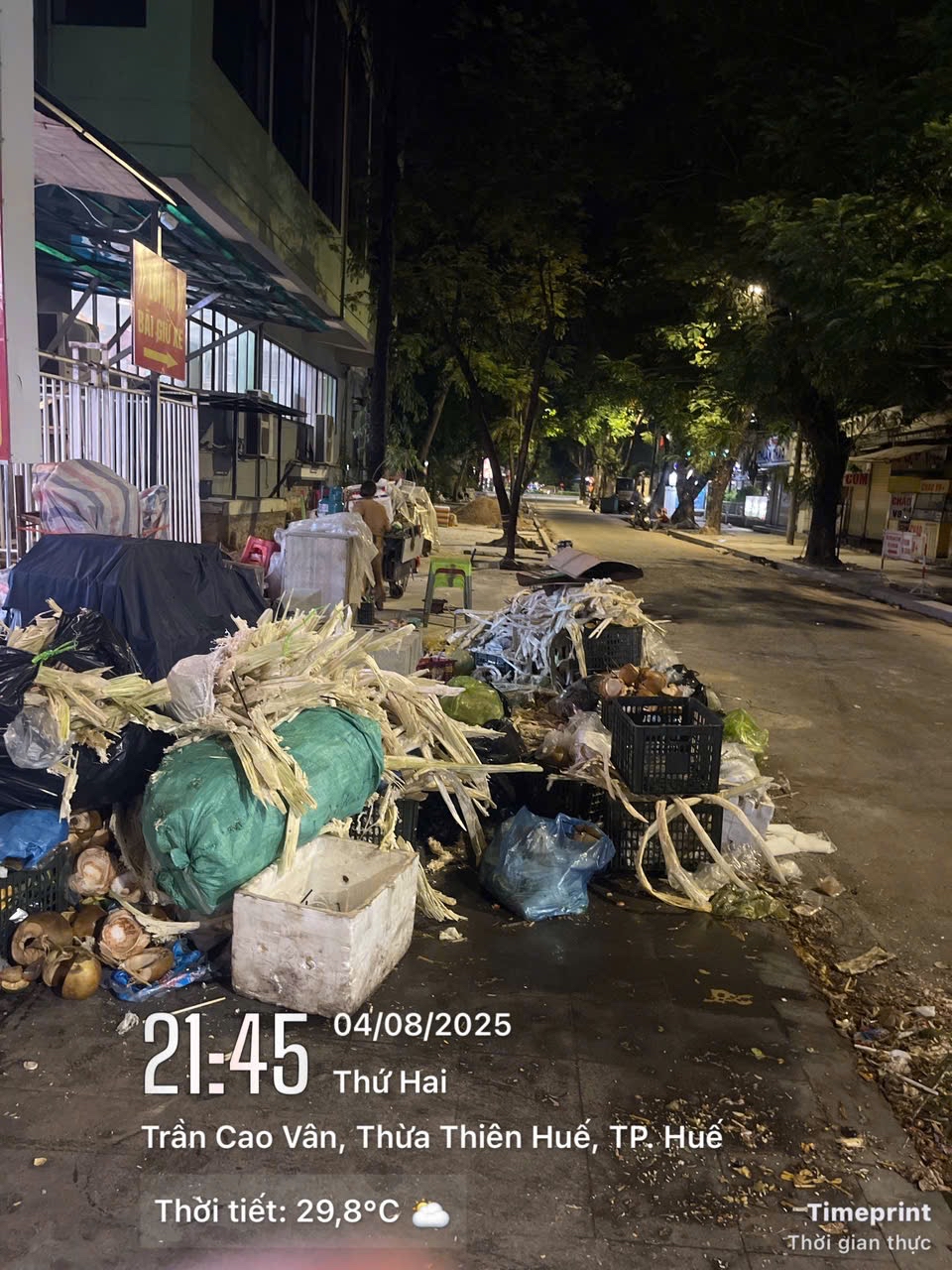 Vấn đề Quý Ông/Bà phản ánh, Trung tâm dịch vụ công phường Thuận Hóa xin thông báo kết quả như sau: Trung tâm dịch vụ công phường Thuận Hoá đã chỉ đạo Bộ phận trật tự Xây dựng - trật tự đô thị tiến hành kiểm tra thực tế tại địa điểm phant ánh đường Trần Cao Vân nhận thấy tại địa điểm phản ánh đã tiến hành dọn dẹp sạch sẽ, đảm bảo mỹ quan đô thị, môi trường cho tuyến đường thông thoáng. Nếu để tái diễn việc tập kết rác tại địa điểm trên gây ô nhiễm môi trường và có hình ảnh, video ghi nhận việc vứt rác của người có hành vi vi phạm về việc vứt rác không đúng quy định sẽ xử lý theo quy định tại Điểm d, khoản 2, Điều 25 của Nghị định 45/2022/NĐ-CP về lĩnh vực bảo vệ môi trường. (có hình ảnh kèm theo).