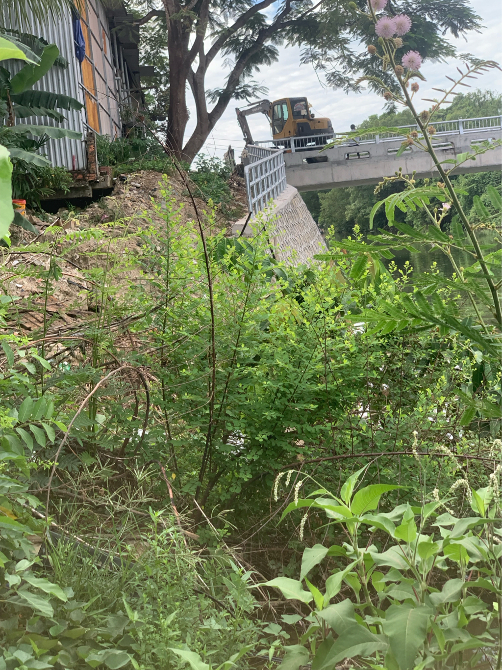 Hiện tại, đơn vị thi công đang triển khai 02 mũi thi công xây dựng kè: mũi 1 từ số nhà 307 về hướng cuối tuyến; mũi 2 từ số nhà 471 về đầu tuyến (Đính kèm hình ảnh). Sau khi hoàn thành đoạn kè nêu trên, đơn vị thi công sẽ triển khai đoạn kè gần cầu Kim Long và đoạn kè gần cầu bắc qua sông Kẻ Vạn. Ban QLDA kính mong ông\bà thông cảm.