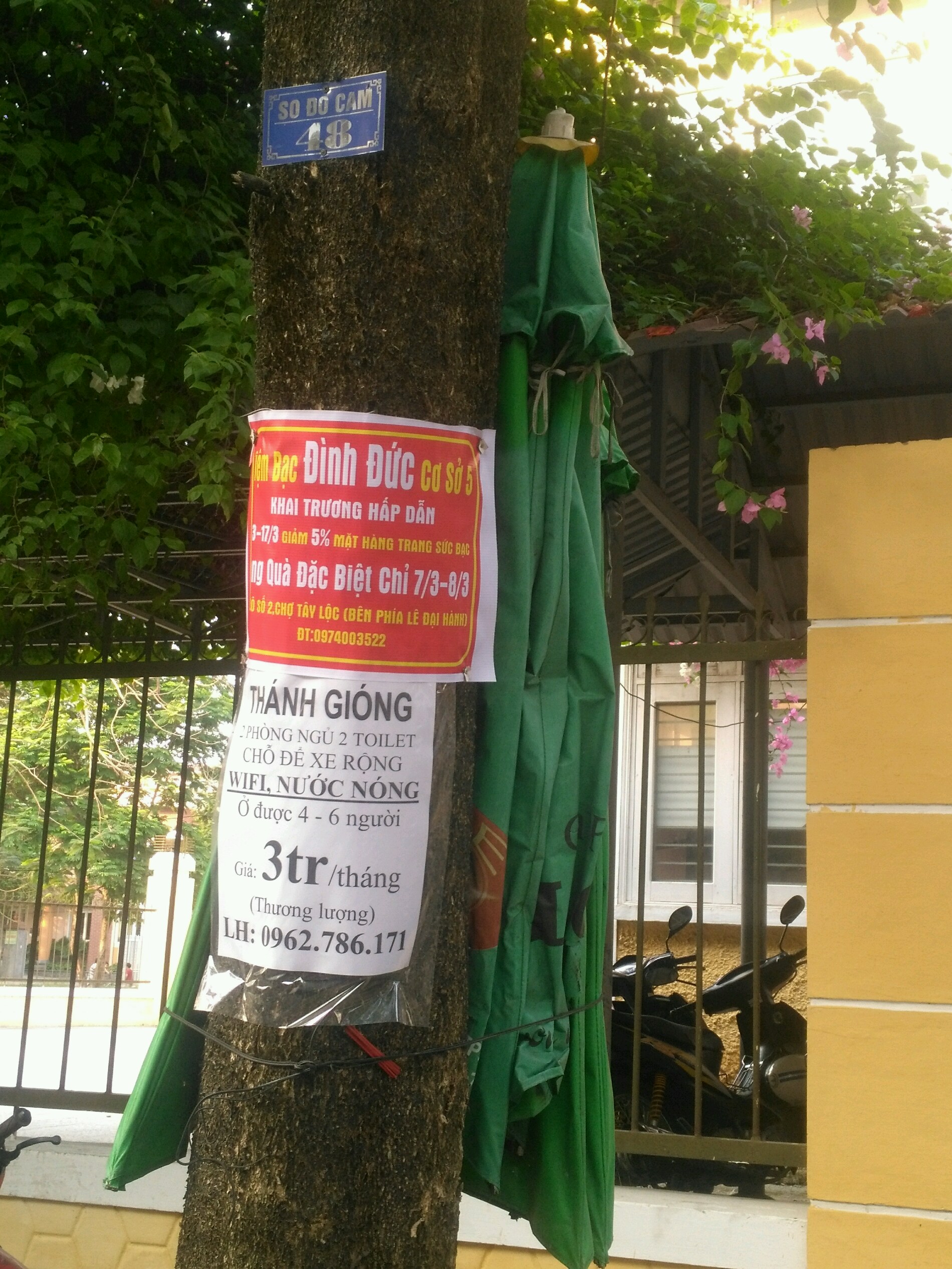 16 giờ 47 phút, ngày 9/03/2019, phát hiện Tiệm bạc Đình Đức (địa chỉ Lô số 2 Chợ Tây Lộc, phía đường Lê Đại Hành) có hành vi vi phạm pháp luật quảng cáo: thực hiện đóng đinh treo bảng quảng cáo vào thân cây. Vị trí cây bị đóng đinh: sát Uỷ ban nhân dân phường Tây Lộc. Mong cơ quan chức năng có phương án xử lý các trường hợp này! Xin cám ơn!