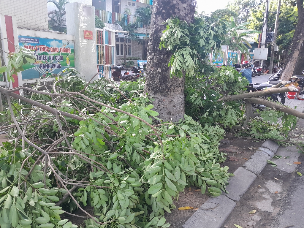 Trung tâm đã thu dọn các nhánh cây sau lưng Trường Mầm non Vĩnh Ninh; đính kèm hình ảnh.