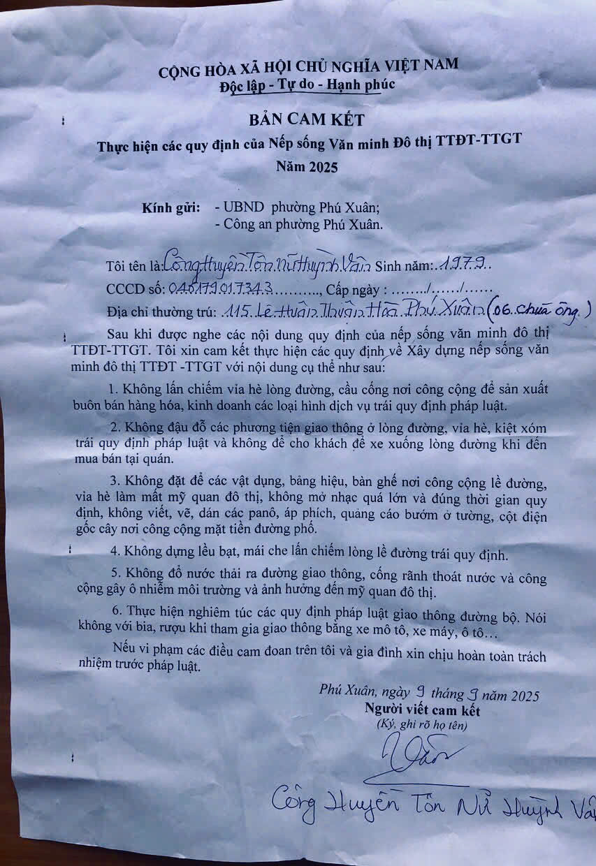 Sau khi nhận được phản ánh, UBND phường đã kiểm tra tại thực địa và ngày 09/9/2025 UBND đã mời bà Công Huyền Tôn Nữ Huỳnh Vân đại diện cho hộ gia đình tại địa chỉ 06 Chùa Ông để làm việc. Tại buổi làm việc bà Vân cam kết thực hiện các quy định của nếp sống văn minh đô thị, trong đó cam đoan chấp hành việc không mở nhạc quá lớn và đúng thời gian quy định. (đính kèm biên bản)