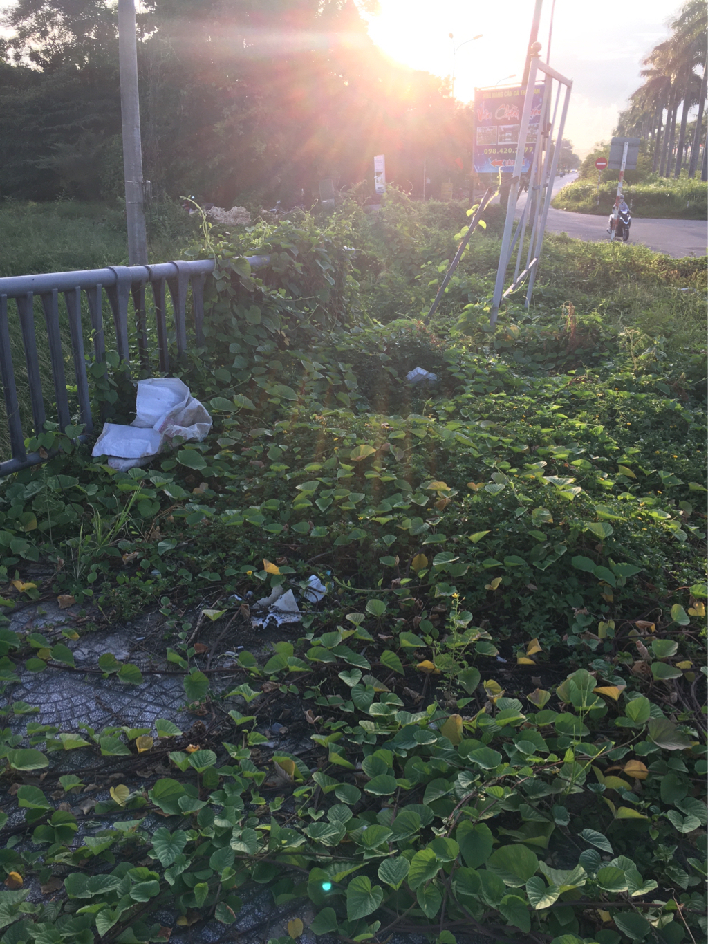 Dọn cỏ mới ở mặt đường,còn lối đi lên cầu cho ngươi đi bộ chưa dọn