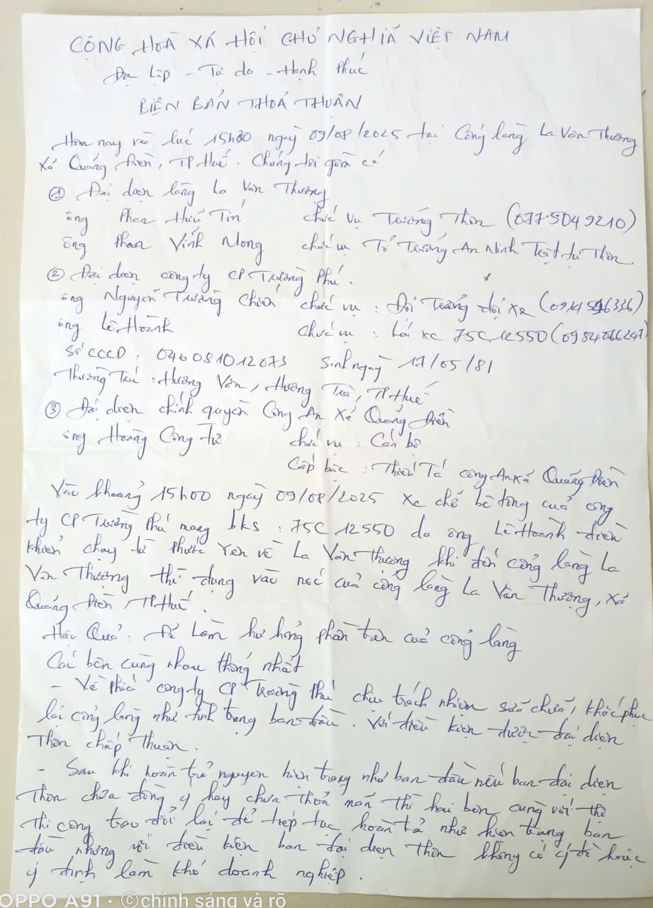 Sau khi sự việc xảy ra UBND xã đã chỉ đạo Công an xã cùng Ban điều hành thôn La Vân Thượng tiến hành lập biên bản ghi nhận sự việc (có Biên bản kèm theo). Tại buổi làm việc, bên gây thiệt hại là Công ty Trường Phú cam kết sẽ khắc phục hoàn toàn thiệt hại đã gây ra và được Ban điều hành thôn La Vân Thượng đồng ý. Tuy nhiên, trong thời gian chờ Công ty Trường Phú khắc phục thiệt hại, để đảm bảo an toàn cho người dân, UBND xã đã chỉ đạo Phòng Kinh tế xã tham mưu, báo cáo Sở Xây dựng đặt barie, rào chắn để các phương tiện giao thông và người dân không lưu thông trên tuyến đường đó.