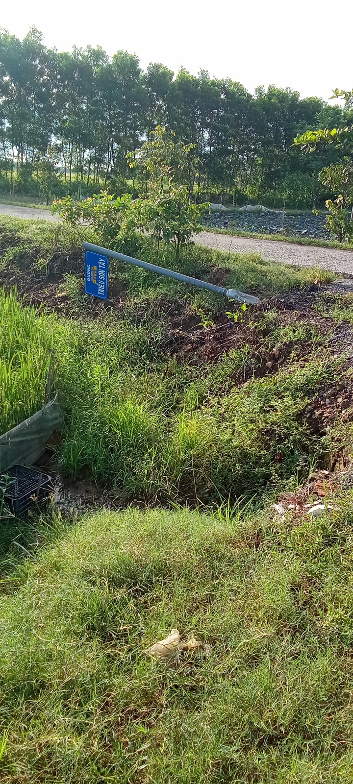 Bảng tên đường Triều Sơn Tây đổ ngã. Mong cơ quan chức năng kiểm tra và xử lý.