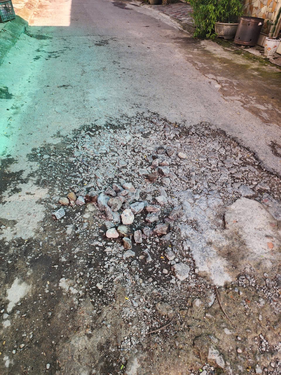 Kiến nghị sửa lại đường bị ổ voi tại 33 Hồ Văn Hiển, ảnh hưởng đến giao thông đi lại.