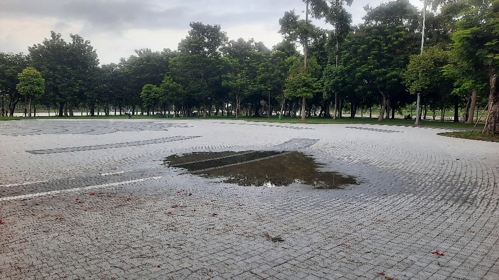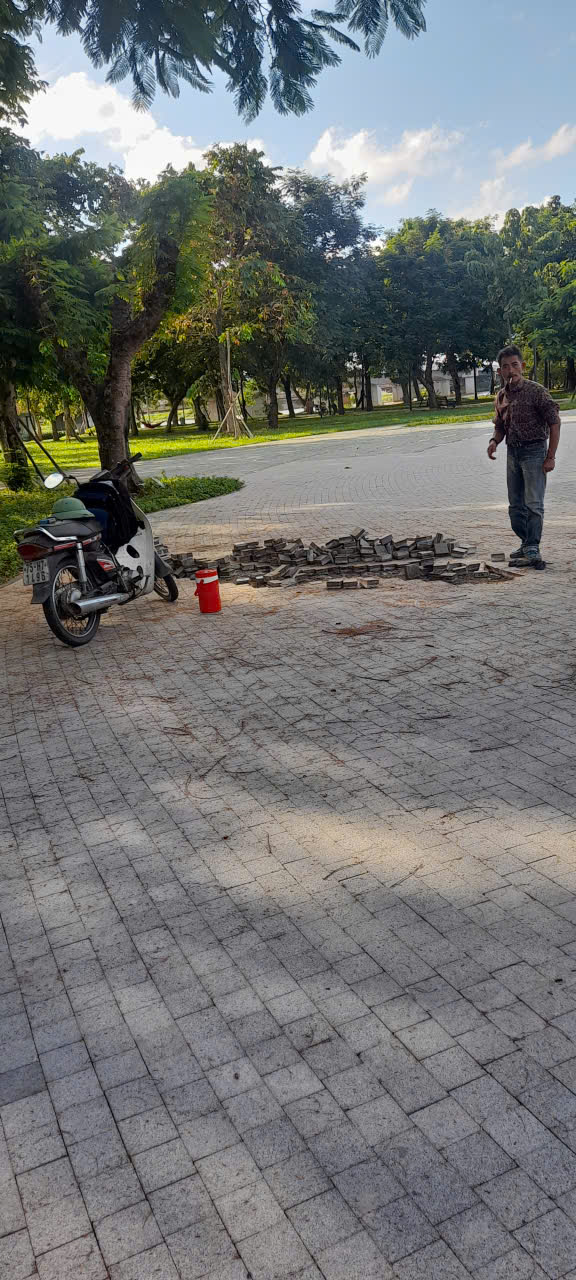 Trung tâm đang xử lý phần gạch ở công viên cồn Dã Viên để không xảy ra tình trạng ứ đọng nước; đính kèm hình ảnh.