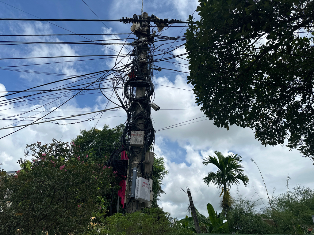 Đường dây mạng sà xuống sân Trường Mầm non Phú Thượng, ảnh hưởng đến môi trường giáo dục trẻ.