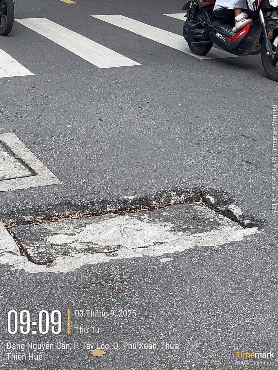 Ảnh chụp lúc 09h09 ngày 3/9/2025 tại Trần Quốc Toản giao Đặng Nguyên Cẩn, hố ga này sụp lún đã hơn nửa năm nhưng chưa thấy nhà máy nước xử lý. Đến nay đã lún rất sâu, tiềm ẩn nguy hiểm cho người dân đi lại. Kiến nghị cơ quan chức năng vào cuộc xử lý.