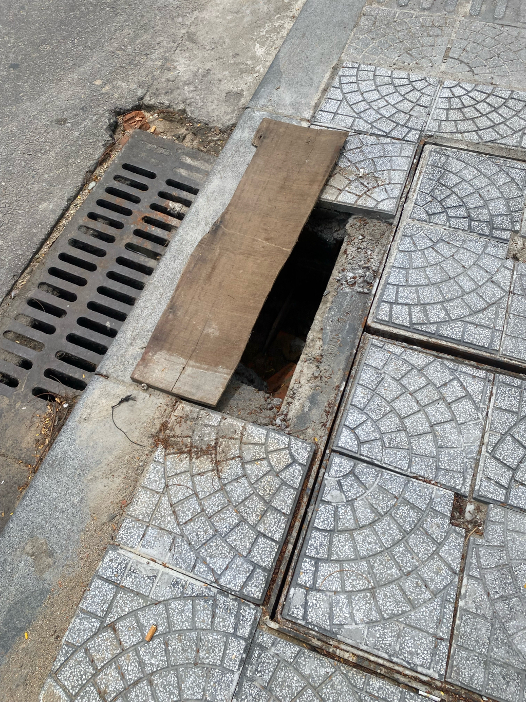 Hố ga chưa hoàn thiện ngay trước trường THCS Hùng Vương. Chỗ này các học sinh thường qua lại, rất nguy hiểm nếu các em lọt chân xuống hố. Chỗ này chỉ đặt tạm miếng gỗ mỏng, không có biển cảnh báo, nguy hiểm cho cả người đi bộ và phương tiện giao thông. Đề nghị cơ quan chức năng kiểm tra và xử lý gấp. Ảnh chụp 9/9/2025.