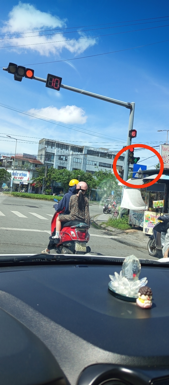 Khi chúng tôi chạy làn bên phải ngoài cùng từ xa thì hoàn toàn không thấy đèn xanh cho phép rẽ phải.