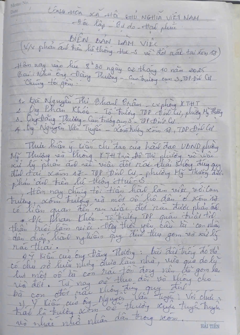 Sau khi tiếp nhận thông tin UBND phường đã chỉ đạo tổ trưởng tổ dân phố Định Cư kiểm tra, làm việc các hộ dân khu vực trên nhắc nhở, các hộ đã cam kết không tái diễn. (có biên bản kèm theo)