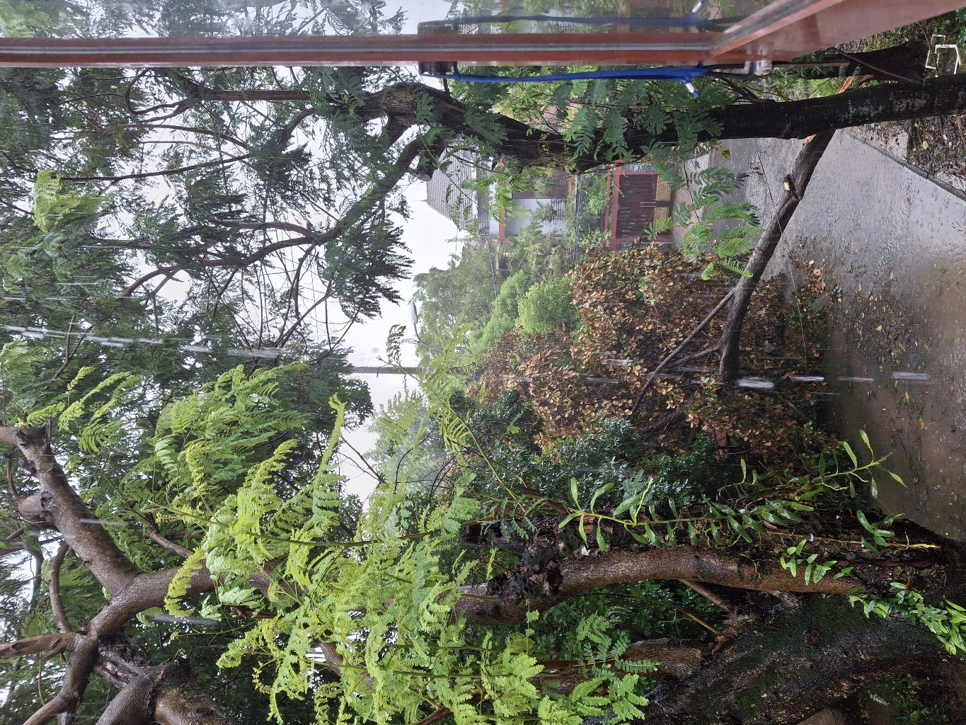 Cây to ngã ngay đầu đường kiệt 93 Lê Đại Hành làm đứt dây điện và chắn hết lối đi. Kiến nghị cơ quan chức năng kiểm tra xử lý.