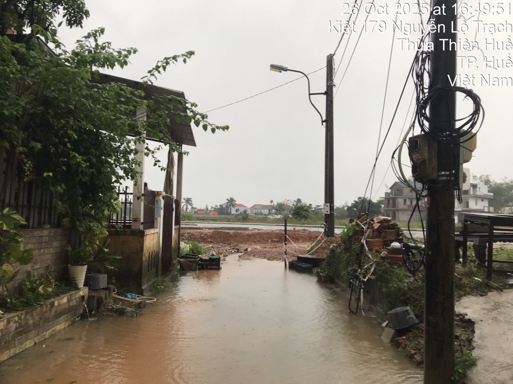 hôm nay 26/10/2025 đất đỏ bắt đầu trôi vào kiệt và các nhà dân