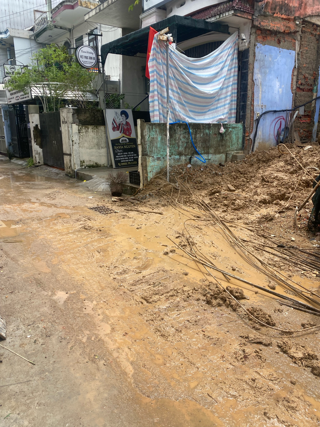 Công trình xây dựng nhà ở ngay khu dân cư ở TTTP, để sắt thép bừa bãi, đất bùn lầy không dọn dẹp gây bức xúc cho người dân xung quanh. Rất là bẩn, lượng phương tiện qua lại đông khiến con đường khi nào cũng nhếch nhác. Tình trạng này đã diễn ra nhiều ngày. Mong cơ quan giải quyết giúp cho người dân để đi lại dễ dàng. Cảm ơn ạ!