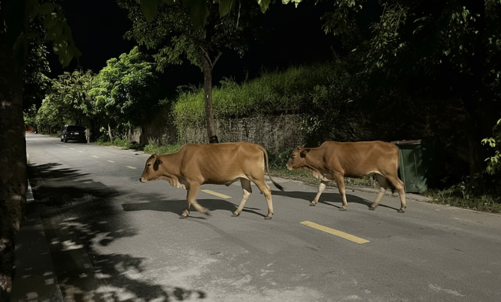 Khu vực đường Lương Ngọc Quyến (từ Nguyễn Trãi đến Tôn Thất Thiệp) có tình trạng thả rông bò, không có người trông coi. Vấn đề này gây nguy hiểm cho phương tiện giao thông và mất vệ sinh, mỹ quan đô thị (phóng uế khắp nơi). Đề nghị có biện pháp chấn chỉnh. (Ảnh chụp lúc 19:50 ngày 29/9/2025).