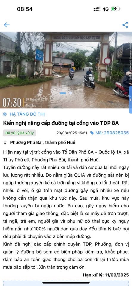 Con đường mà người dân chúng tôi đi lại hằng ngày đã xuất hiện nhiều “ổ voi” từ lâu, gây khó khăn và nguy hiểm cho việc lưu thông, đặc biệt là khi trời mưa. Dù bà con đã nhiều lần kiến nghị, nhưng chính quyền địa phương vẫn chưa có động thái sửa chữa, khiến tình trạng xuống cấp ngày càng nghiêm trọng. Người dân mong cơ quan chức năng sớm quan tâm, khắc phục để đảm bảo an toàn giao thông tại cổng chào tổ dân phố 8A, phường Phú Bài, Thành phố Huế.