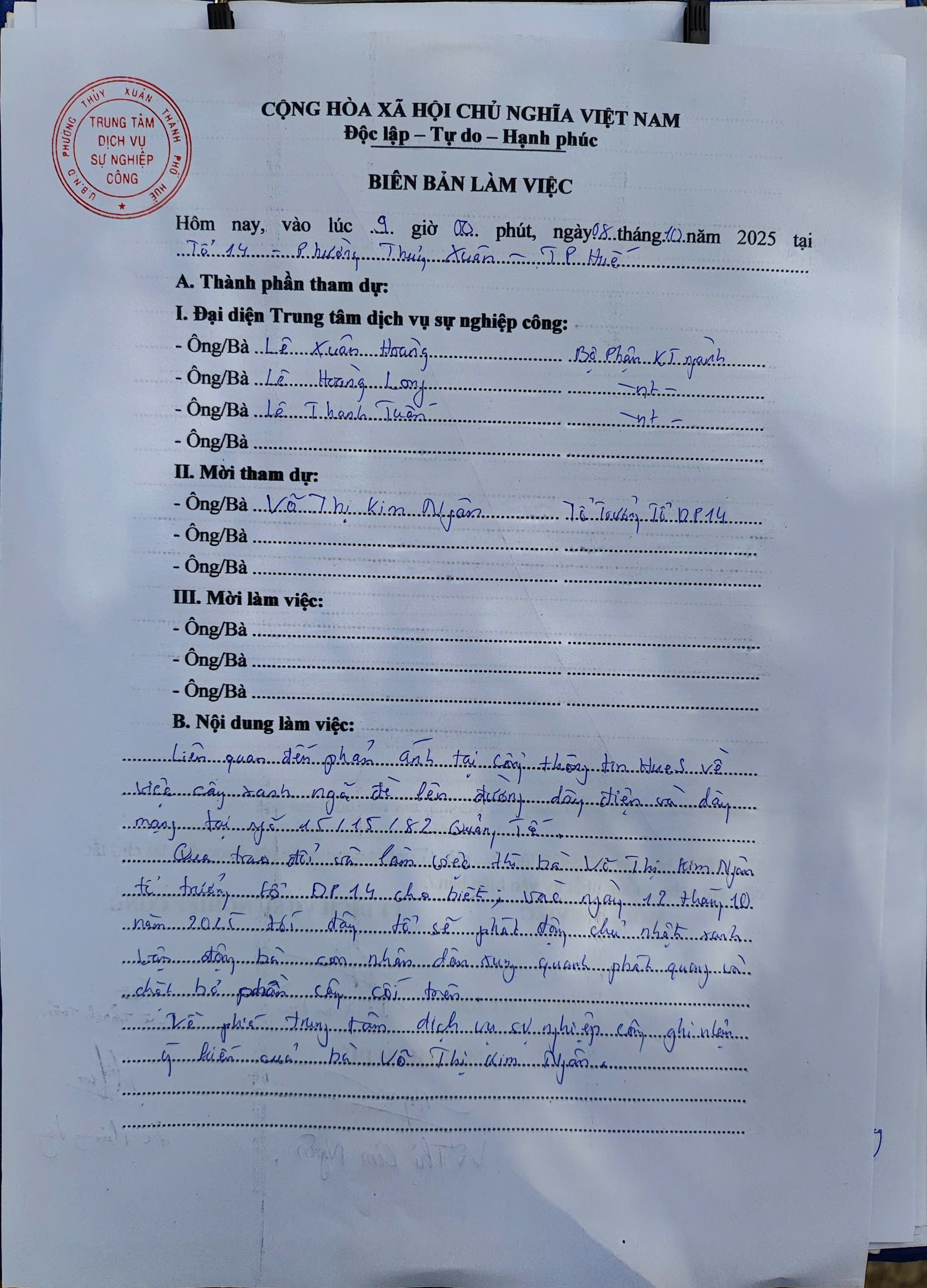 UBND phường Thuỷ Xuân (TP Huế) nhận được phản ánh trên cổng thông tin điện tử Hues đã chỉ đạo Trung tâm Dịch vụ sự nghiệp công phường Thuỷ Xuân thông báo kết quả như sau: