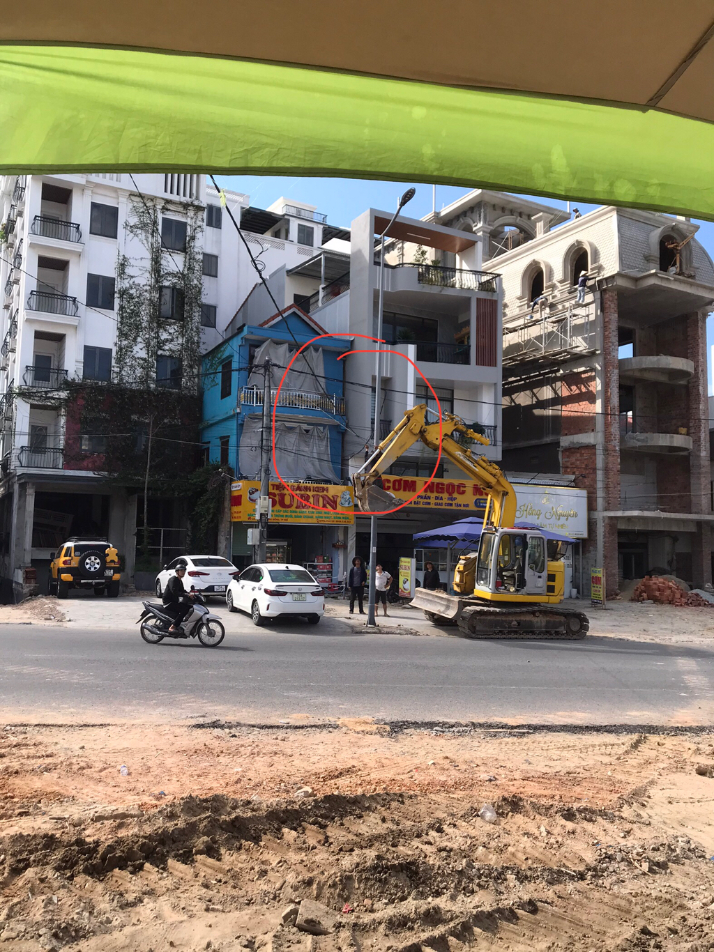 Vẫn còn nguyên chưA treo lại dây điện…nếu có mưa gió với xe lớn chạy ngang dễ đứt dây điện
