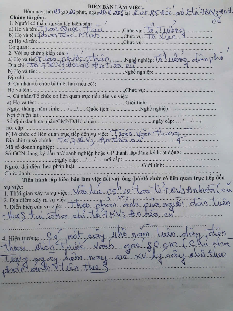 Mưa bão sắp tới cây xanh dính nhiều dây điện cao thế dễ bị đứt gãy, sập nhà gây mất nguy hiểm cho những nhà xung quanh, người đi đường, địa chỉ tại Tổ 7, Khu vực 3, phường Hương An, TP Huế (phường An Hòa cũ). Kính mong cơ quan chức năng kiểm tra, xử lý.