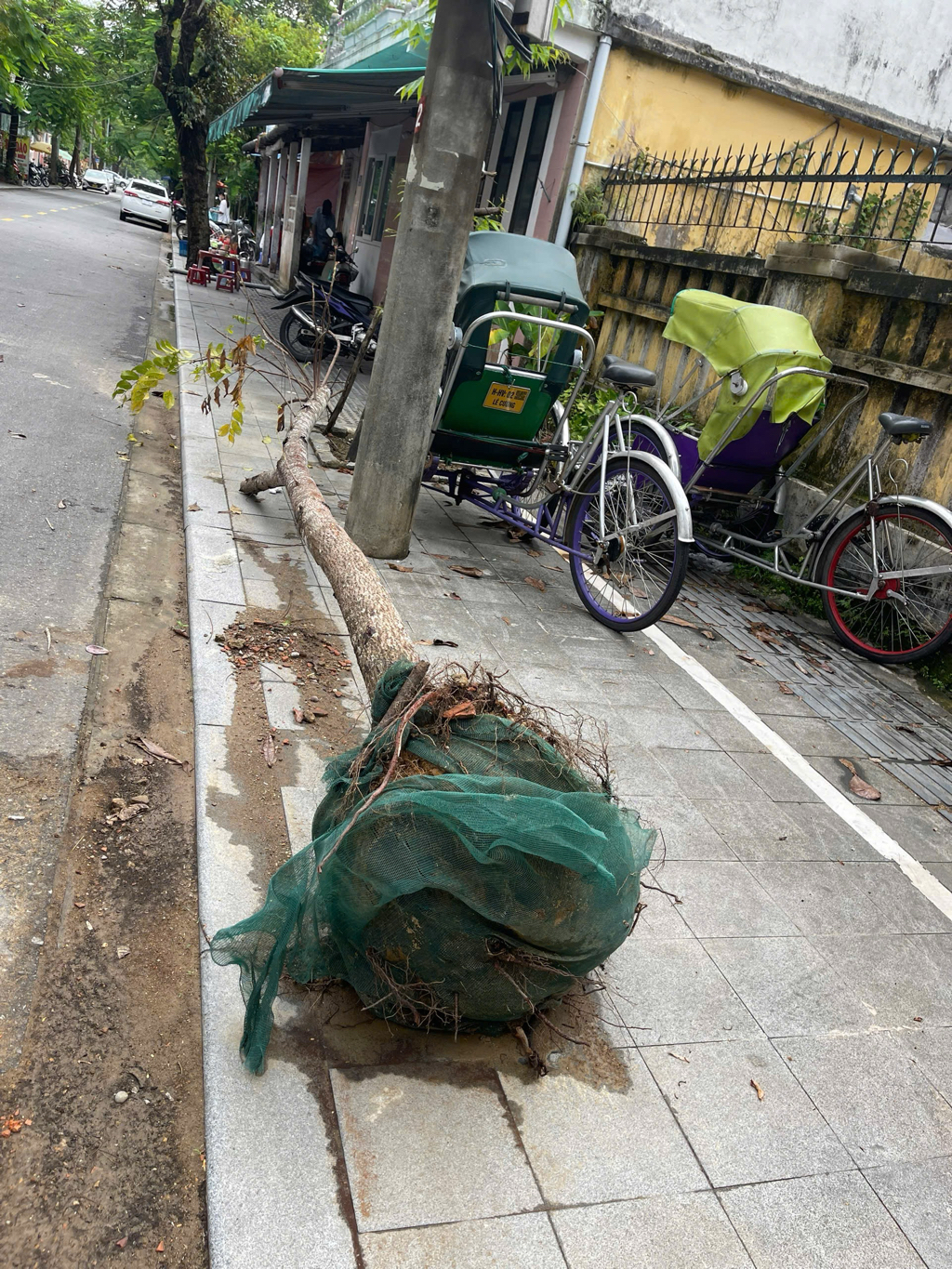 Đơn vị thi công cây xanh tới nhổ lên, để 50 ngày rồi chưa thấy đem trồng ở nơi khác, để lâu ngày vướng trước nhà lề đi bộ. Kính đề nghị đơn vị quản lý di dời đi. Trước nhà 74 Đặng Dung, phường Phú Xuân. Hình ảnh chụp lúc 7g00 ngày 11/10/2025
