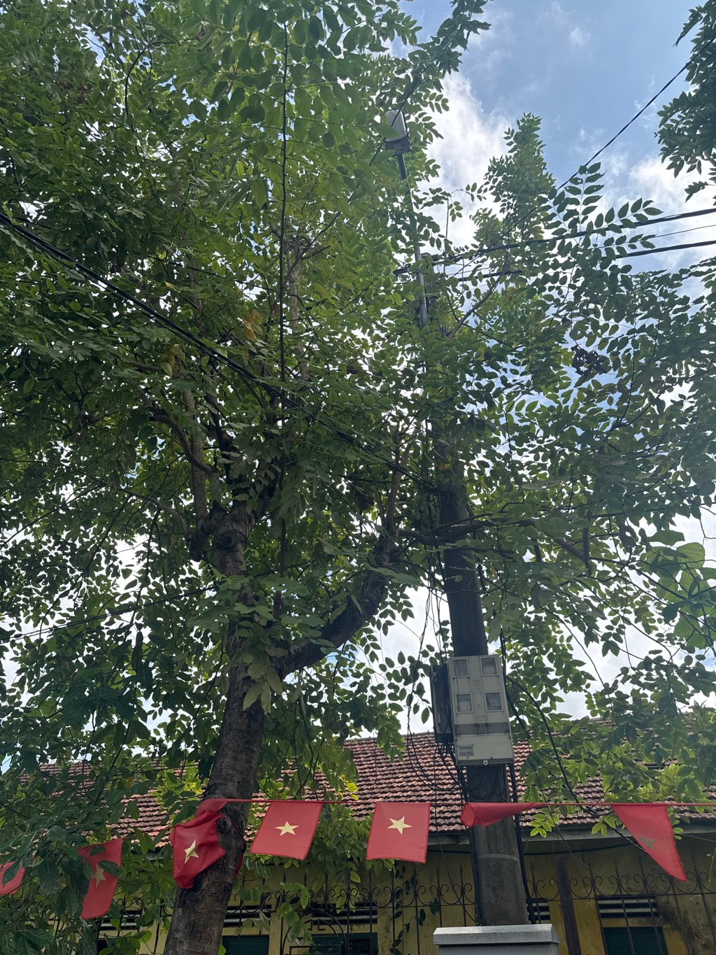 Cây xanh cao mọc um tùm phía trên vỉa hè có những cành đâm vào cột điện và dây điện rất nguy hiểm. Ở đây thường có người dân và khách du lịch đi qua nên kính mong xem xét và xử lý giúp. Xin chân thành cảm ơn.