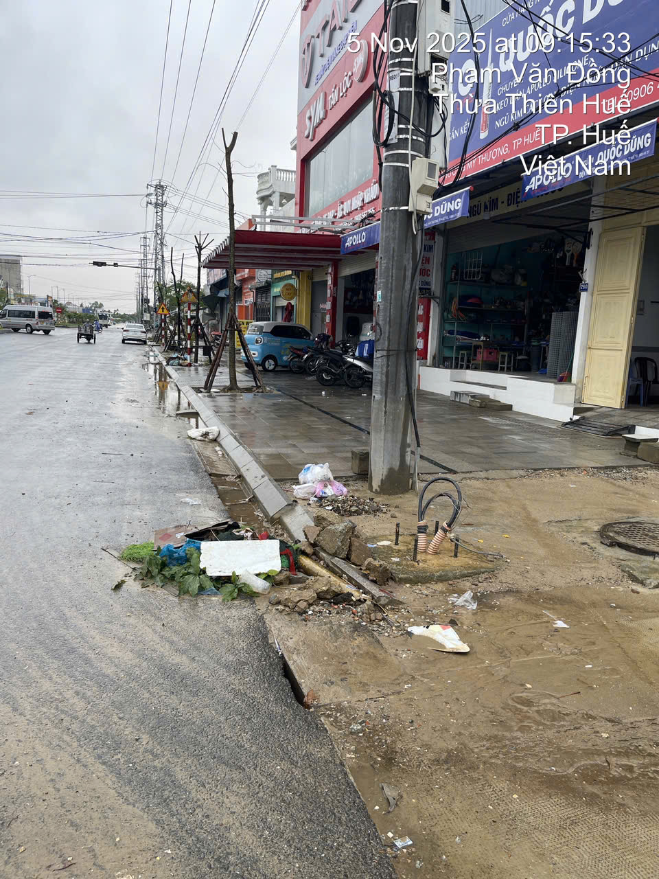 Dây điện làm đường không dọn dẹp rất dễ gây tai nạn buổi đêm. Vị trí ở cây xăng dầu 21, 258 Phạm Văn Đồng, phường Mỹ Thượng, thành phố Huế