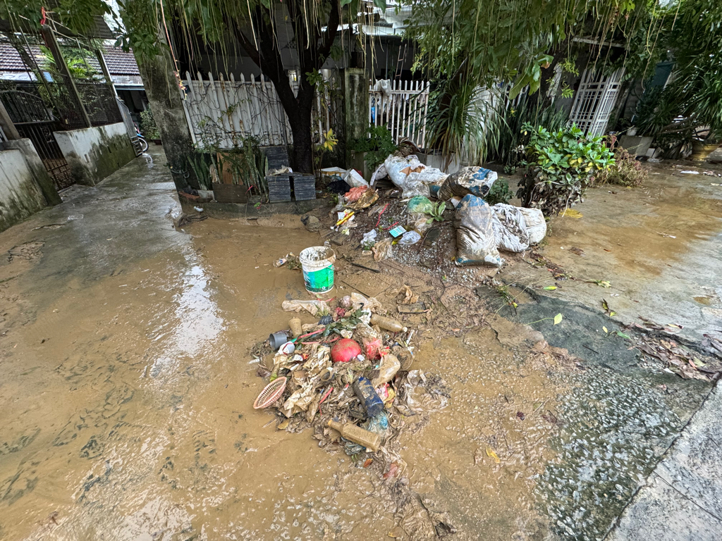 Nhờ dọn vệ sinh rác thải do lũ trôi vào trong hẻm cụt - kiệt 15 Đống Đa, Thuận Hóa, người dân đã tập kết rác mong được dọn dẹp sớm, vì mưa to lại trôi ngược vào nhà dân. Xin cám ơn
