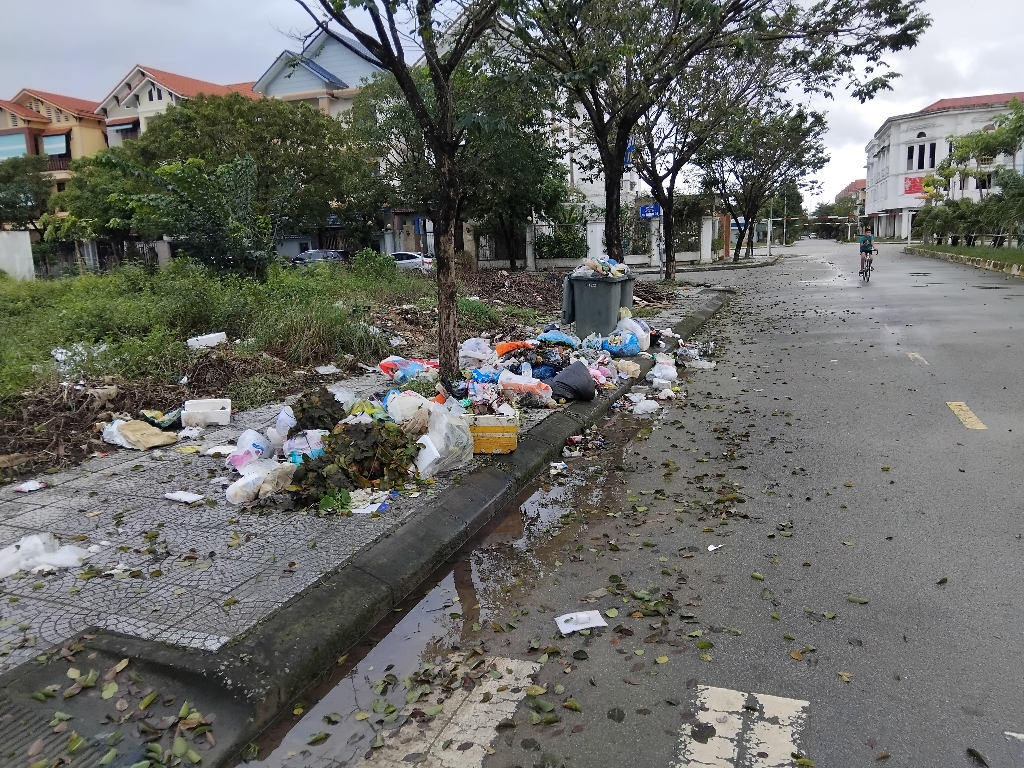 Khu vực đường Hàn Mặc Tử, phường Vỹ Dạ vẫn còn nhiều rác tồn đọng, bùn...