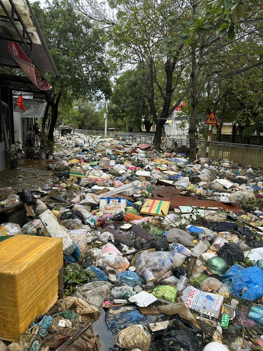 Tình trạng ngập lụt kéo dài đã làm lượng lớn rác thải từ các nơi trôi về, hoặc do hệ thống thoát nước bị quá tải, bịt kín các tuyến đường/hệ thống thoát nước ra vào, khiến đoạn đường từ ngã 3 Thánh Gióng - Trần Quốc Toản đến ngã 3 Tú Xương - Trần Quốc Toản.