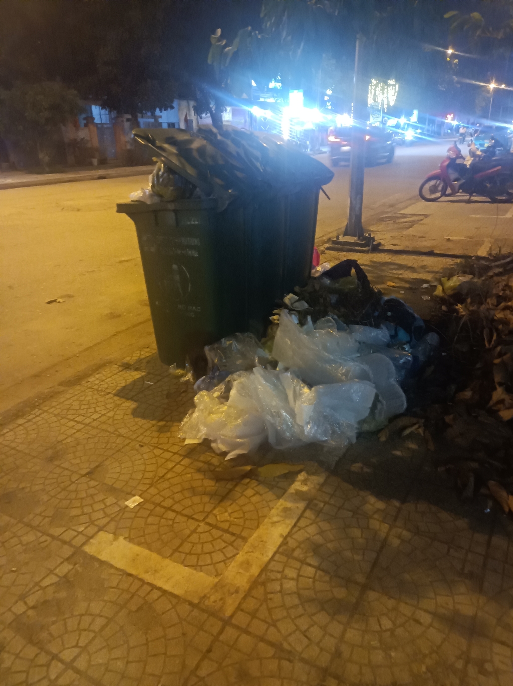 1.Thùng rác môi trường để gần chỗ kinh doanh gây mùi hôi ảnh hưởng tới kinh doanh tại ngã tư Đồng Khởi- Phan Đình Giót, Thủy Xuân, Tp Huế.